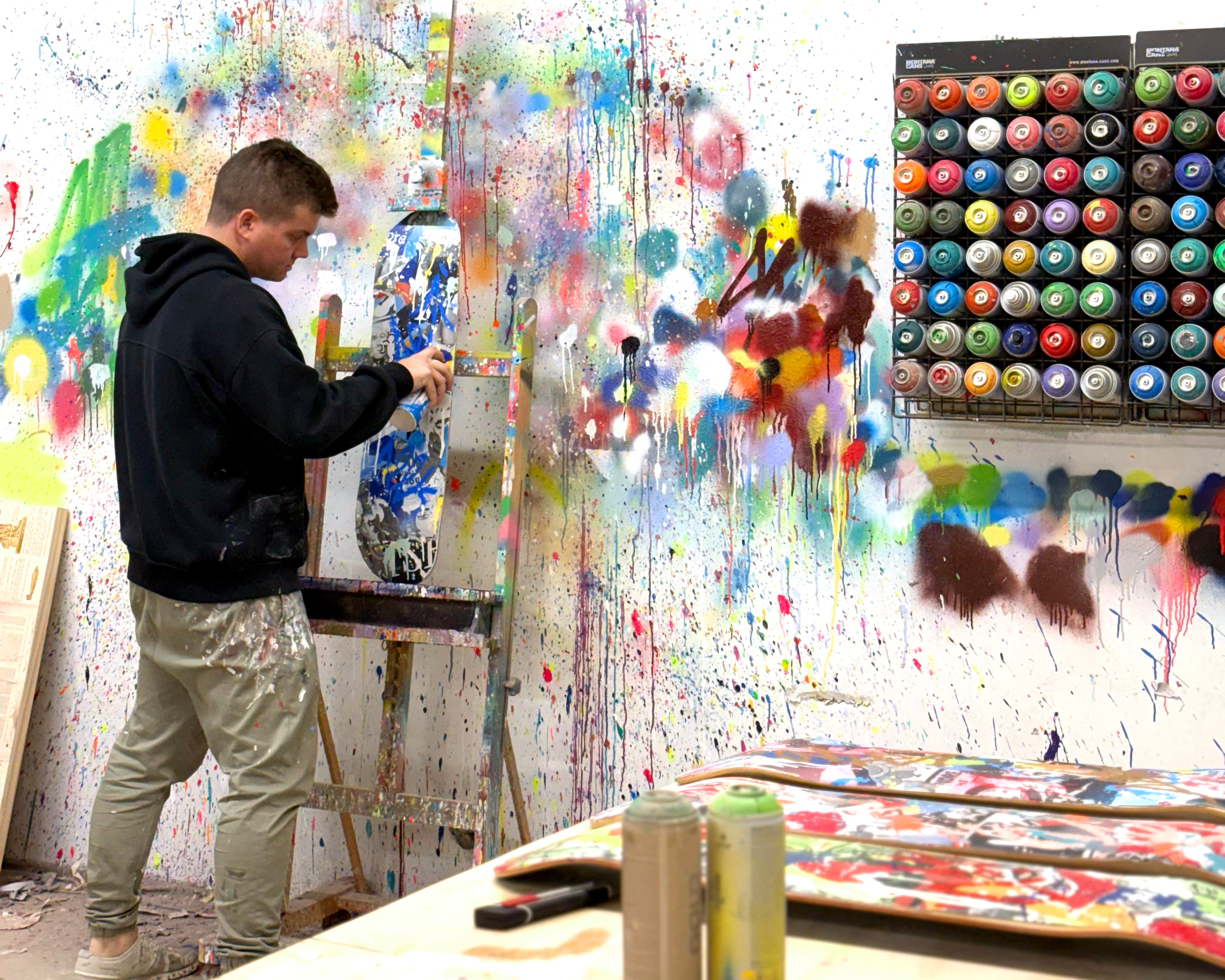 Skate culture has always been an inspiration for my work. This new collection is my tribute to that energy: transforming a functional object into fine art. By merging elements of street posters, photography, paint and a custom black frame I wanted to capture the collision between street art and contemporary art - the vibe of this style continues to inspire everything I create.