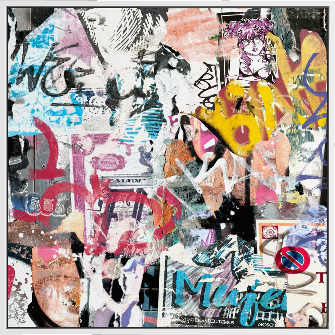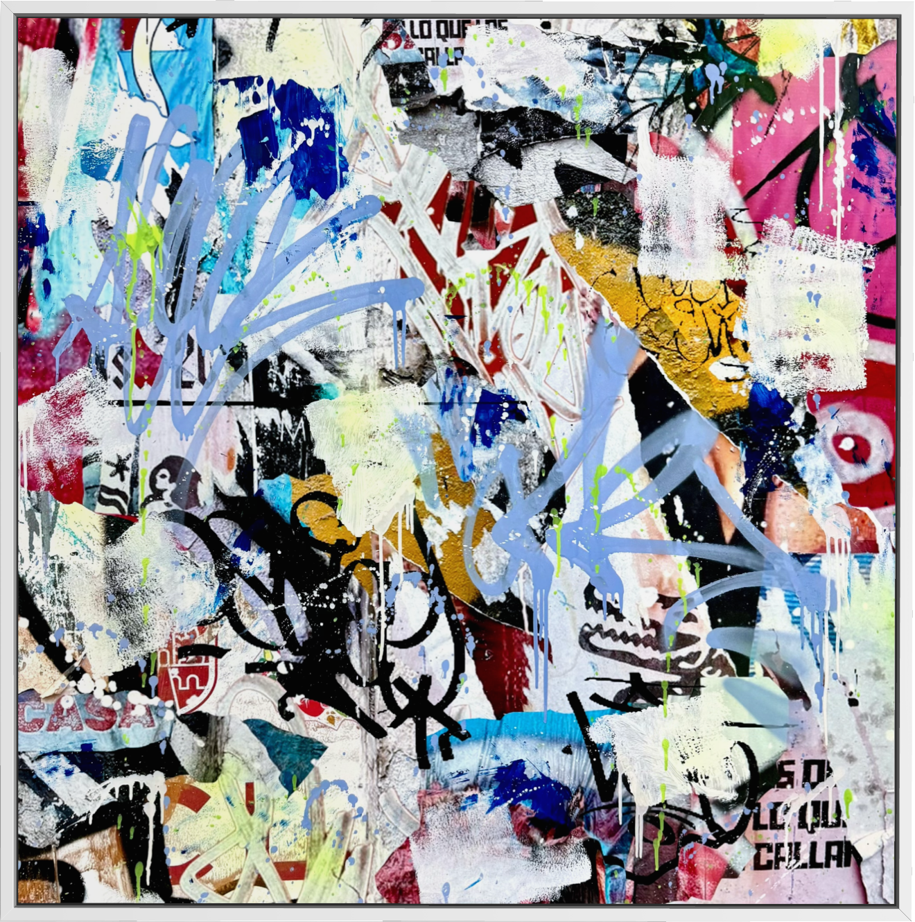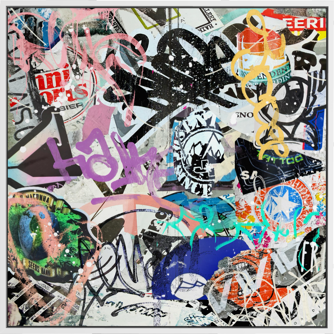 Seek One’s abstract collection draws from contemporary abstraction and street art influence, focusing on texture, movement, and color studies. The work emphasizes energy, tension, and discovery, creating compositions that evolve through texture and color. Each piece is produced with scale and longevity in mind, using unique and archival materials. The collection favors bold statement pieces, offering work that feels familiar yet foreign as more details arise over time.