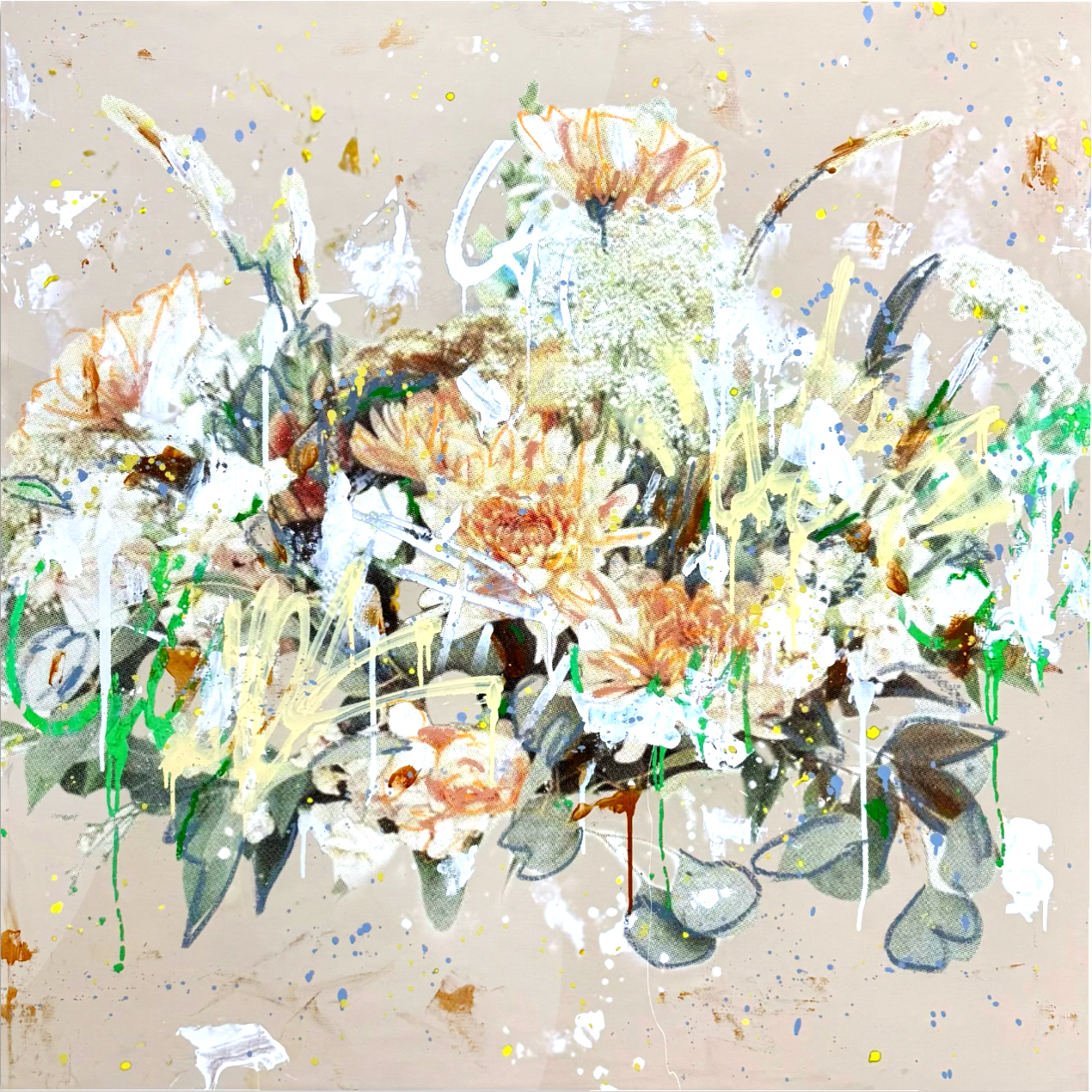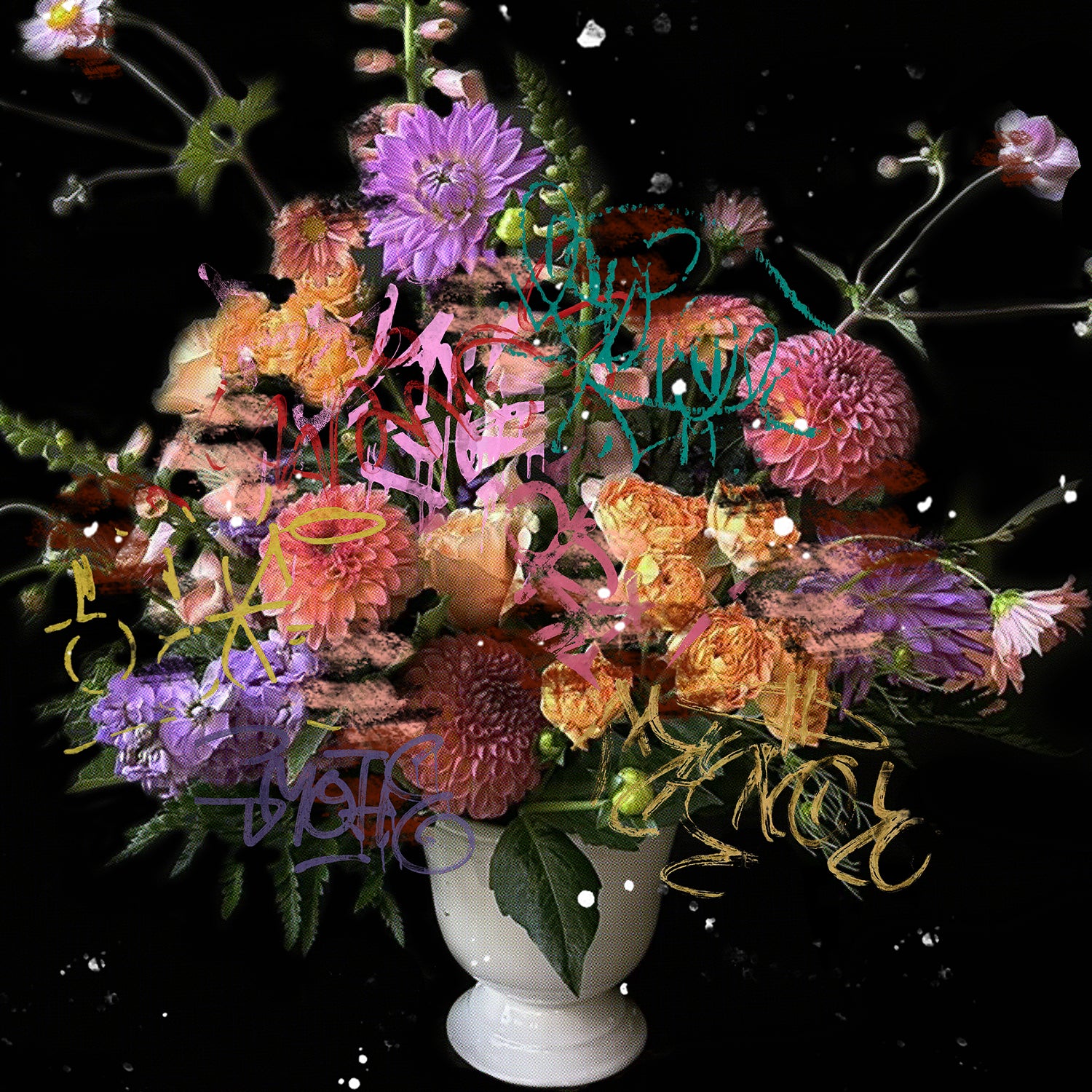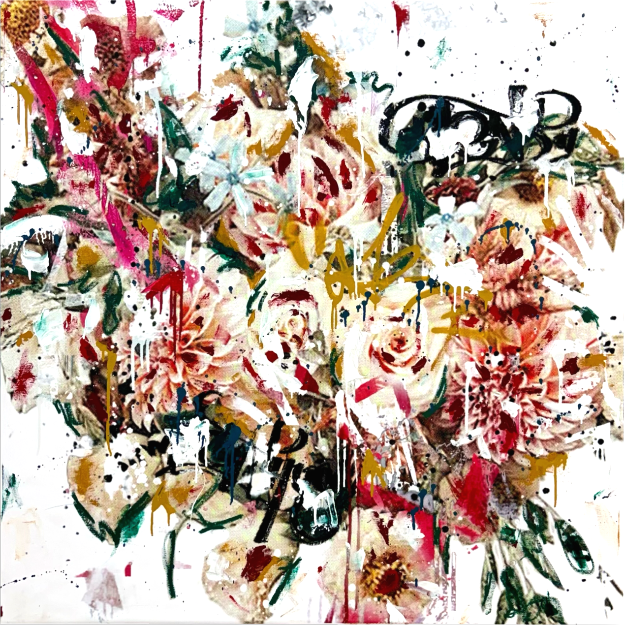 Graffiti Flora explores the relationship between natural and man made asthetics. A mixed-media collection that blends traditional still life florals with graffiti-influenced elements. Organic forms emerge through spray paint, raw lines and layered surfaces, reflecting the relationship between nature and the urban environment. The collection challenges traditional boundaries between street art and fine art by presenting graffiti as a responsive visual language rather than a disruption.